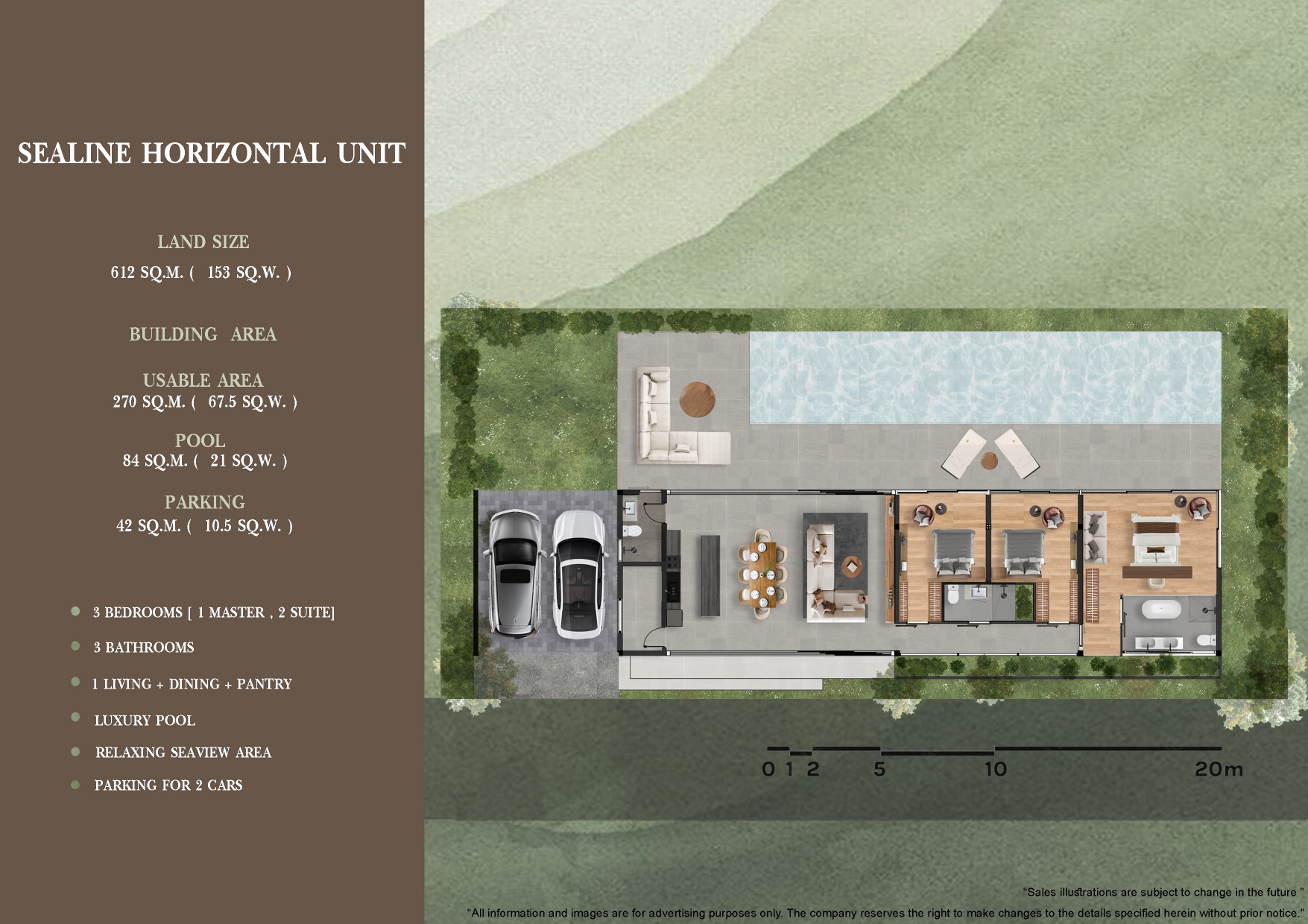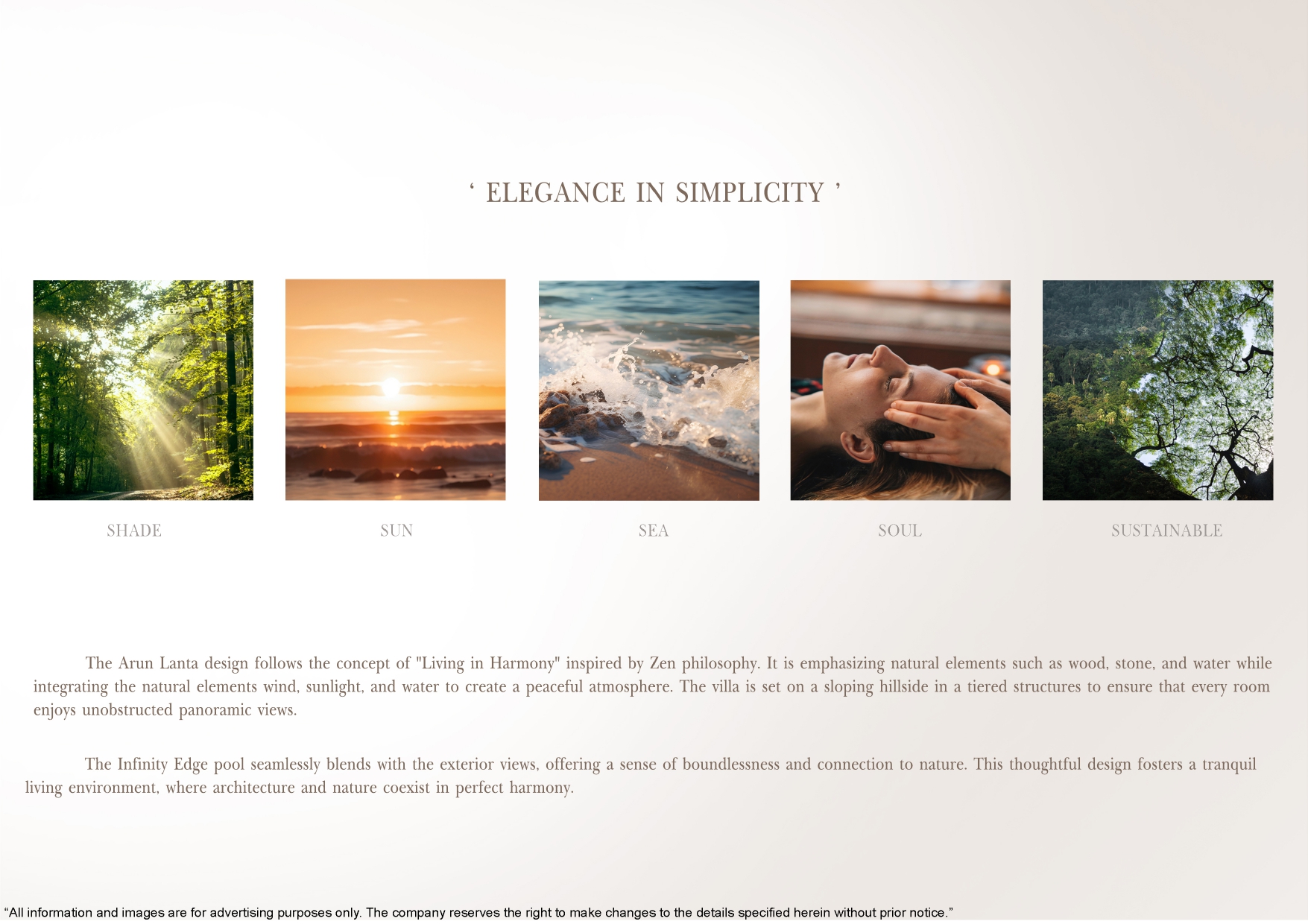 The Arun Lanta design follows the concept of “Living in Harmony” inspired by Zen philosophy. It is emphasizing natural elements such as wood, stone, and water while integrating the natural elements wind, sunlight, and water to create a peaceful atmosphere. The villa is set on a sloping hillside in a tiered structure to ensure that every room enjoys unobstructed panoramic views. The Arun Lanta design embodies the principle of Living in Harmony, drawing inspiration from Zen philosophy. This villa harmoniously incorporates natural elements such as wood, stone, and water, while seamlessly integrating wind and sunlight to cultivate a tranquil environment. Set on a sloping hillside, the tiered structure of the villa ensures that each room enjoys unobstructed panoramic views, enhancing the overall serenity of the space.
